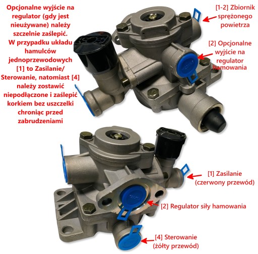 Zawór sterujący + luzujący HZS-4 (Z GRZYBKIEM) wraz z regulatorem siły hamowania 4 - ZAKRESOWY