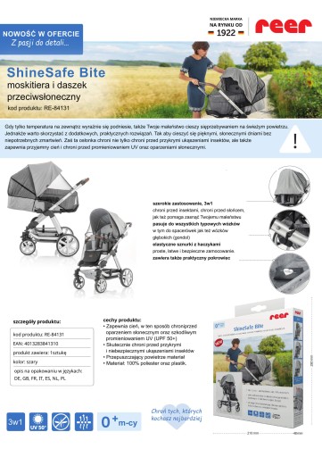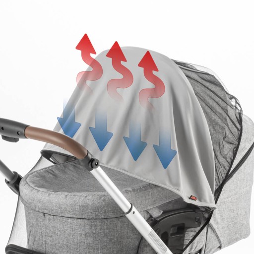 - Daszek-moskitiera pasuje do większości wózków: spacerówek jak też wózków głębokich (gondol).