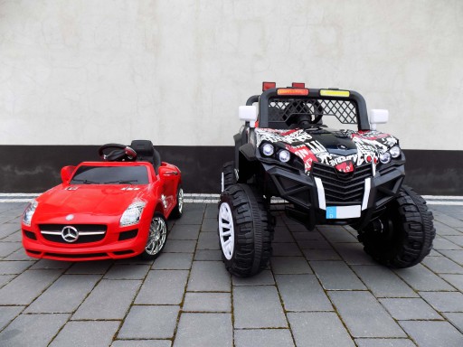 Buggy 4x4 zasilane na 12 V z czterema silnikami zachwyci nie jednego przyszłego kierowcę. Dzięki zastosowanym silnikom łącznie 140 W, auto jeździ po nierównym terenie bez żadnych problemów.