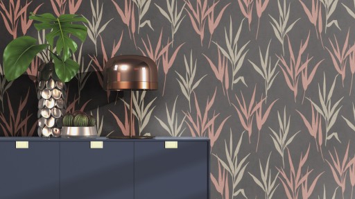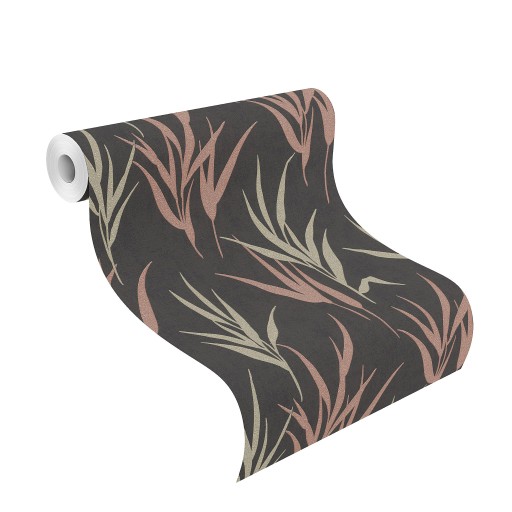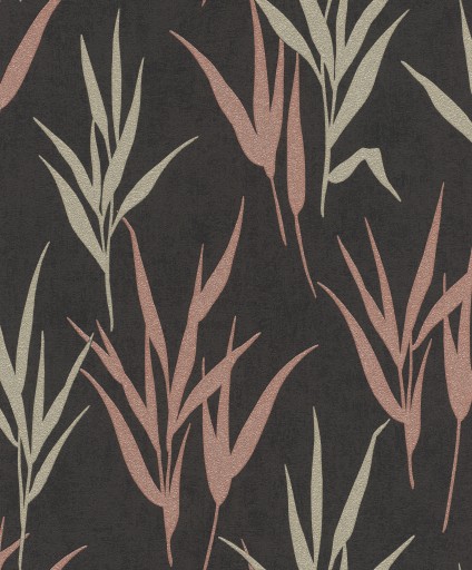 ОБОИ ТРАВА ЛИСТЬЯ ГЛАМУР ЧЕРНЫЕ ОЛИВКО-РОЗОВЫЕ ГЛАМ