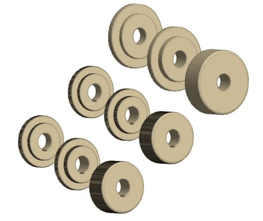 W cenie giętarki MC150B dostarczane są rolki do gięcia kształtowników. Na każdą oś przypada po 3 szt. pierścieni z utwardzaną powierzchnią w celu zminimalizowania zużycia. Wsuwane na osie w różnych konfiguracjach pozwalają walcować profile o różnych przekrojach tj: