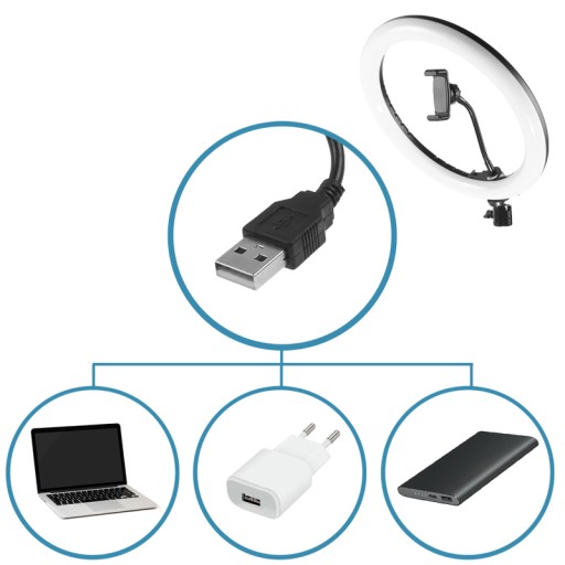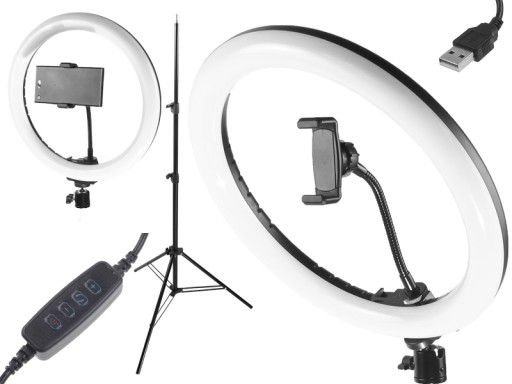Lampa pierścieniowa USB LED ze ściemniaczem i regulacją temperatury barwowej dla smartfona / Iphone'a ze statywem