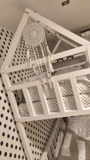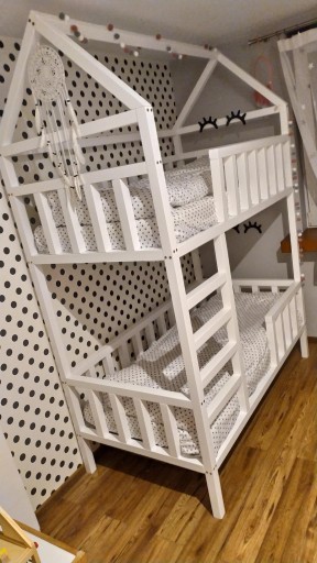 Łóżko dziecięce sosnowe piętrowe w rozmiarze pod materac 90x180, zewnętrzny wymiar 99x189 cm.