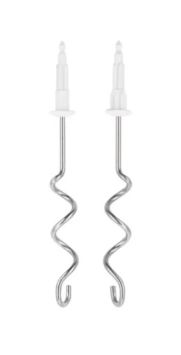 W zestawie znajduję się kocówki do ubijania i mieszania oraz haki do zagniatania ciasta.