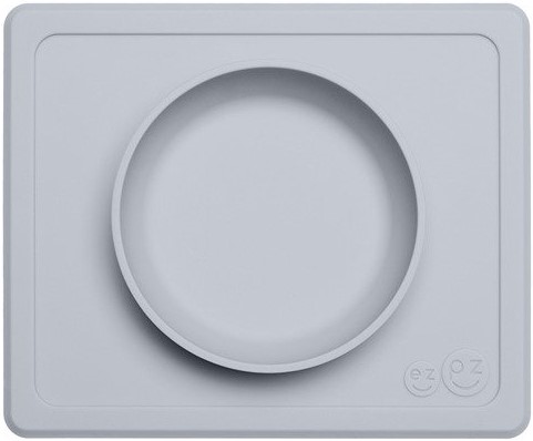 Zestaw EZPZ: Silikonowa miseczka z podkładką 2w1 Mini Bowl i Silikonowy talerzyk z podkładką 2w1 Mini Mat, kolor pastelowa szarość