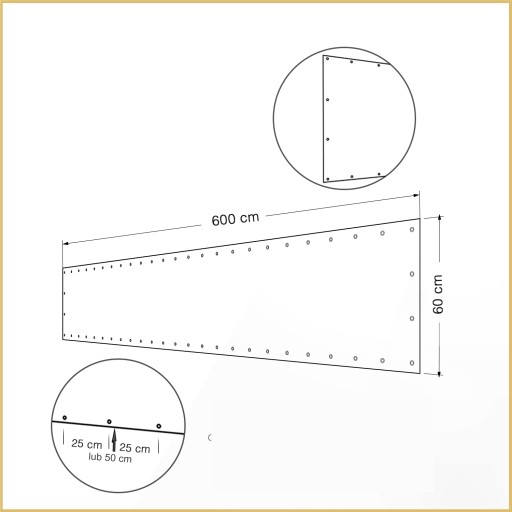 Stabilne - Dzięki optymalnemu rozmieszczeniu metalowych oczek co 50cm lub 25cm za dodatkową opłatą (należy kupić osłonę w zestawie z usługą montażu dodatkowych oczek) na górze, dole oraz 4 oczek na brzegach materiału, osłony stabilnie przylegają do powierzchni balkonu, balustrady czy ogrodzenia.