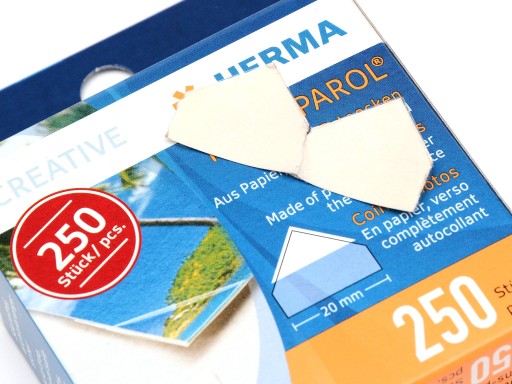 Oferujemy: Herma Foto narożniki, przylepce, rożki do zdjęć, odbitek do wklejenia do albumu - 250 sztuk.