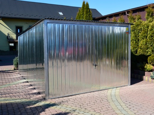Konstrukcja garażu wykonana z kątowników ocynkowanych. Do boków konstrukcji nitowana jest blacha trapezowa t-7 ocynkowana, za pomocą nitów aluminiowych. Gotowe elementy skręcane są ze sobą za pomocą śrub tworząc zwartą i trwałą konstrukcję. Na końcu przykręcony jest dach z blachy trapezowej t-14, który w standardzie tworzy spad na tył. Materiały używane do produkcji dobieramy racjonalnie, co zapewnia trwałość, funkcjonalność oraz bezpieczeństwo naszych wyrobów.