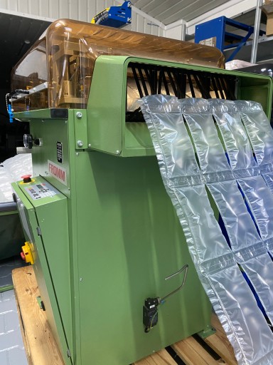 Maty powietrzne wykonywane z dwóch rolek folii o szerokości 420 mm. Napełnienie poduszek powietrzem może być regulowane. W maszynie stosuje się trzy rodzaje folii: - PE (polietylen) uniwersalna; - PA (poliamid) do zabezpieczeń bardzo ciężkich produktów; - PE AST (polietylen antyelektrostatyczny) do zabezpieczeń produktów elektronicznych.Maszyna sprawna technicznie