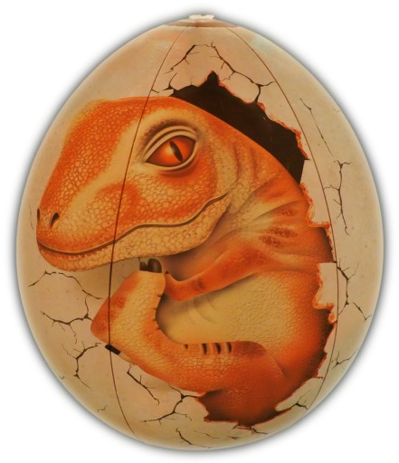 Ta niepozorna z wyglądu zabawka to dmuchane jajko z wizerunkiem dinozaura, które pełni funkcję lampki nocnej i popularnej przez wiele lat wańki wstańki.