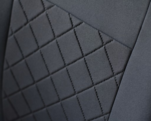 Pokrowce miarowe DRAFT LINE wykonane są z dzianiny tapicerskiej w kolorze popielatym – nowością w ofercie jest tłoczona faktura materiału w postaci kratek, zastosowana na pasie środkowym. Atutami tego typu tkaniny oprócz walorów estetycznych jest również lepsza cyrkulacja powietrza, która zwiększa komfort użytkowania.