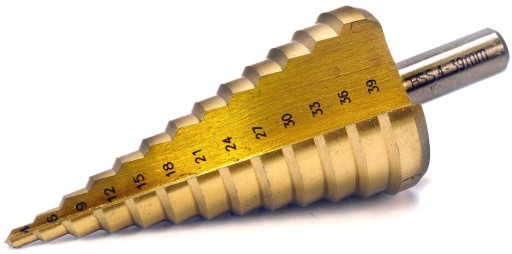WIERTŁO STOPNIOWANE CHOINKOWE ze stali szybkotnącej HSS z powłoką TYTANOWĄ od 4mm do 32 mm