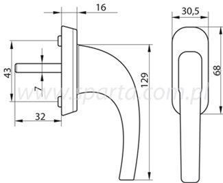 Uniwersalna klamka do okien posiada mechanizm blokujący obrót klamki, zabezpieczający przed włamaniem poprzez przesuniecie elementów ryglujących.