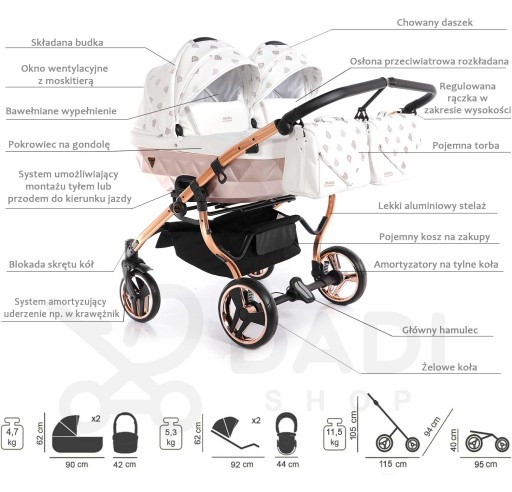 Коляска для близнецов JUNAMA GLOW DUO 3в1 БЕЛОЕ ЗОЛОТО 02