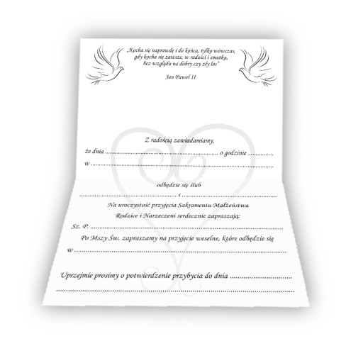 Przedmiotem oferty jest zaproszenie na Ślub.