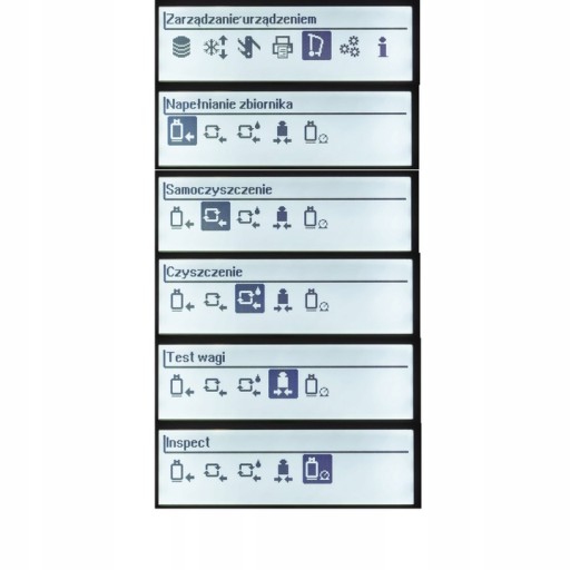 - Inspect: autodiagnoza urządzenia pod kątem poprawności pracy wszystkich podzespołów