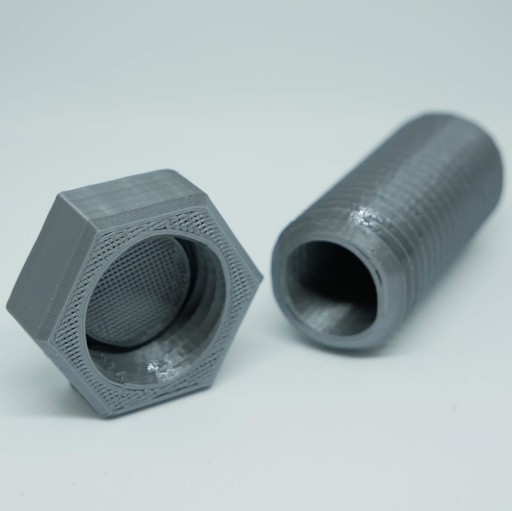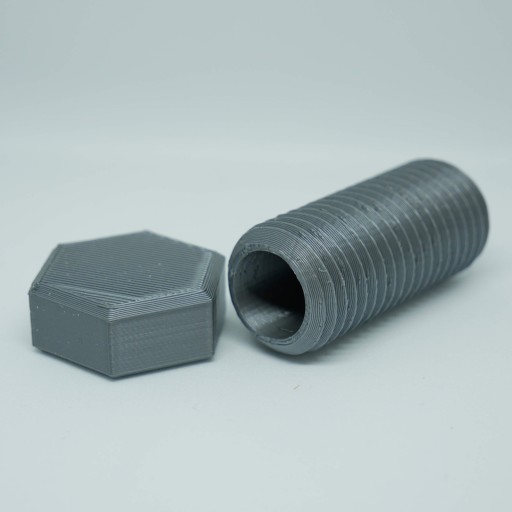 Kesz śruba - wykonana jest w całości z wytrzymałego i mocnego plastiku PLA. Składa się z dwóch części: łebka oraz gwintowanego rdzenia, który jest pusty w środku. Dzięki temu można ukryć w nim logbook lub informacje do kolejnego etapu np multaka lub zagadki. Łebek z rdzeniem połączony jest także gwintem.