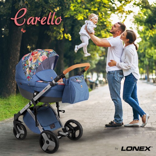 Wózek dziecięcy wielofunkcyjny CARELLO firmy Lonex wykonany jest z tkanin żakardowych najwyższej jakości. Żakardy cechuje duża odporność i wytrzymałość, dobra przepuszczalność powietrza oraz łatwość w utrzymaniu czystości. Rączka wózka została obszyta wysokogatunkową eko skórą. Wózek jest elegancki i ponadczasowy. Wzory na budce wózka dodają mu piękna oraz podkreślają pełne wyrazu kolory. CARELLO to nie tylko piękny i niepowtarzalny wózek ale również funkcjonalny i bezpieczny.