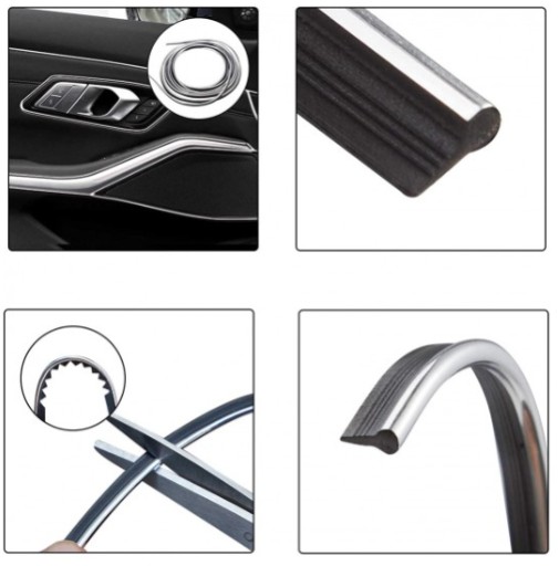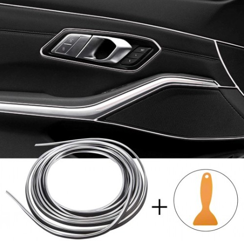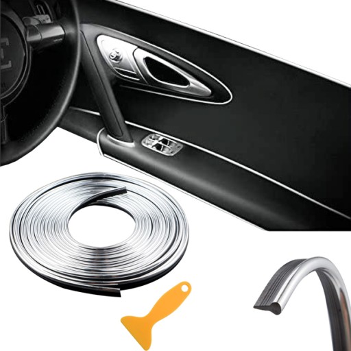 LISTWA OZDOBNA TAŚMA DEKORACYJNA DO SAMOCHODU SREBRNA SZARA CHROM TUNING WCISKANA