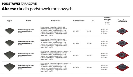 -AKCESORIA do tarasów wentylowanych: podkładki gumowe pod wsporniki, podkładki wygłuszające, klipsy dylatacyjne i do montażu maskownic