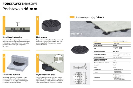 Regulowany wspornik płytek tarasowych służący do montażu (bez kleju) legarów pod deski tarasowe lub płyt tarasowych o grubości ok. 2 cm (tarasów wentylowanych)