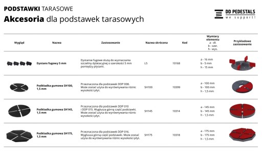 -STAŁE PODSTAWKI o różnych grubościach (2; 8; 10; 15, 16 mm) oraz gumowe podkładki wygłuszająco - wyrównujące