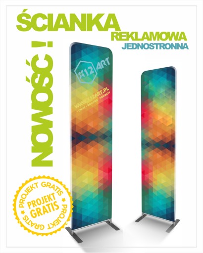 ŚCIANKA TEKSTYLNA ŚCIANKA REKLAMOWA JEDNOSTRONNA ROLL UP 120x230 + PROJEKT GRAFICZNY GRATIS !!!