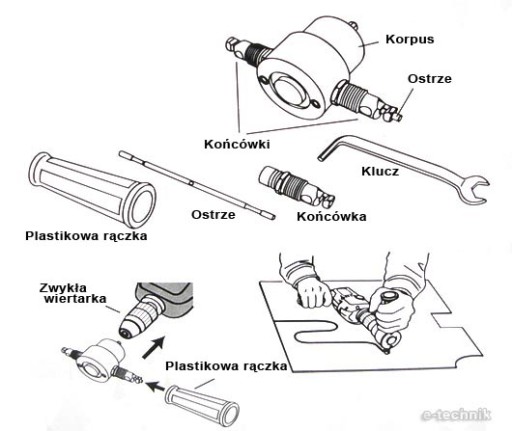 - Narzędzie dostosowane do wiertarek o obrotach 3000 R.P.M