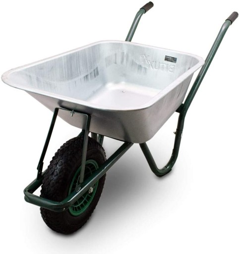 - Podwójne podpory idealnie podtrzymują taczkę przed przechyleniem i idealnie rozkładają ciężar.