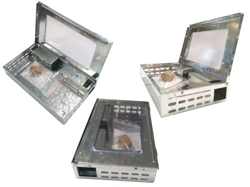 Pułapka wyposażona jest w okienko rewizyjne, które pozwala na szybkie sprawdzenie, czy szkodnik został złapany.