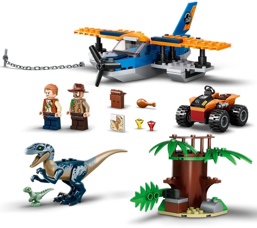 Dzięki zestawowi LEGO Jurassic World Welociraptor: na ratunek dwupłatowcem (75942) mali poszukiwacze przygód mogą wcielić się w postać Owena Grady’ego, który leci na ratunek Sinjinowi Prescottowi. Samolocik jest łatwy w budowie, więc będzie idealnym modelem dla przedszkolaków. Ma też kokpit dla minifigurki oraz łańcuch do podniesienia Sinjina.