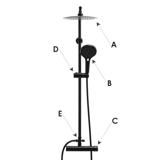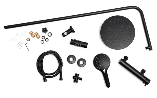 - Rodzaj zestawu: Naścienny, dwuotworowy, z przełącznikiem, z deszczownicą o średnicy 25 cm i słuchawką prysznicową dwustrumieniową