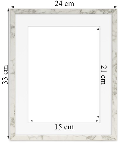- Wymiar wewnętrzny (wymiar na zdjęcie z passe-partout) : 15x21- po wyciągnięciu passe-partout A4 (21x29,7)