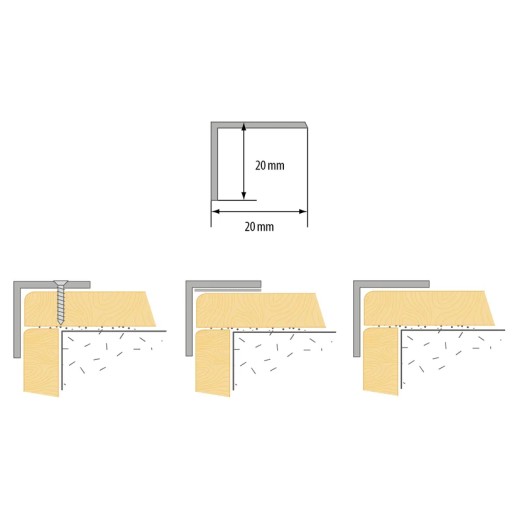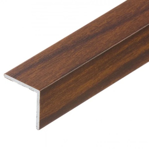 - Profil aluminiowy pokryty drewnopodobną okleiną ochrania krawędzie stopni schodowych pokrytych drewnem lub panelami.
