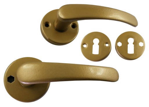 - klamka z okrągłym szyldem (na obie strony drzwi)