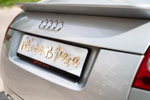 Niech dodatkowego blasku dodadzą wykonane z niezwykłą starannością ŚLUBNE TABLICE DO RAMEK REJESTRACYJNYCH z eleganckim napisem, które będą zwieńczeniem dekoracji Waszego samochodu.