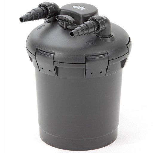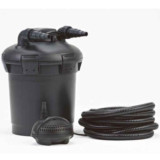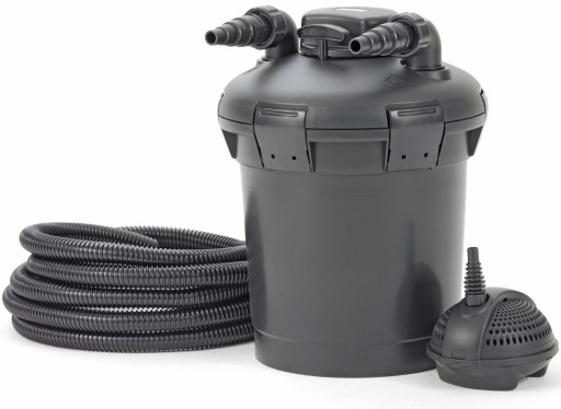 Gwarantowana czysta woda: zestaw filtrów ciśnieniowych PondoPress jest dostosowany do wielkości oczek wodnych do 10000 l bez obsady ryb / 5000 l z obsadą rybną. Połączenie filtra ciśnieniowego i odpowiedniej pompy z prefiltrem uwalnia staw od gruboziarnistych cząstek brudu o wielkości do 4 mm. Substancje odżywcze i mętna woda są niezawodnie usuwane przez zintegrowany 9-watowy sterylizator UVC i biomechaniczne media filtracyjne. Filtr ciśnieniowy ma wystarczającą moc, aby przetransportować oczyszczoną wodę na wysokość do 2.2 m i zasilić strumień. Wąż o długości 4,5 m uzupełnia zestaw. Nasza obietnica jakości: 2 lata gwarancji!