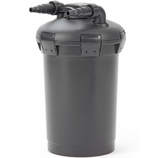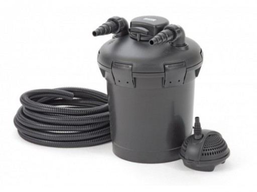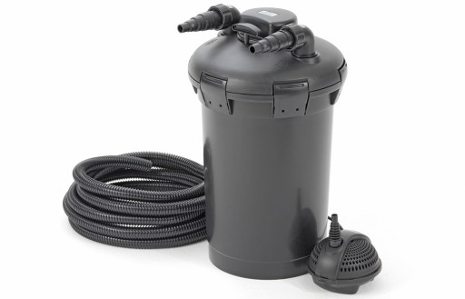 Gwarantowana czysta woda: zestaw filtrów ciśnieniowych PondoPress jest dostosowany do wielkości oczek wodnych do 15000 l bez obsady ryb / 7500 l z obsadą rybną. Połączenie filtra ciśnieniowego i odpowiedniej pompy z prefiltrem uwalnia staw od gruboziarnistych cząstek brudu o wielkości do 4 mm. Substancje odżywcze i mętna woda są niezawodnie usuwane przez zintegrowany 11-watowy sterylizator UVC i biomechaniczne media filtracyjne. Filtr ciśnieniowy ma wystarczającą moc, aby przetransportować oczyszczoną wodę na wysokość do 2.2 m i zasilić strumień. Wąż o długości 4,5 m uzupełnia zestaw. Nasza obietnica jakości: 2 lata gwarancji!
