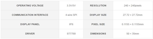 - 240×240 resolution, 65K RGB colors, clear and colorful displaying effect