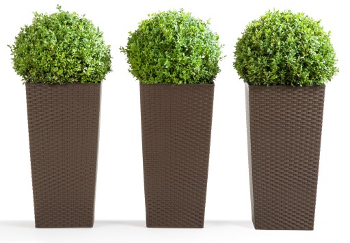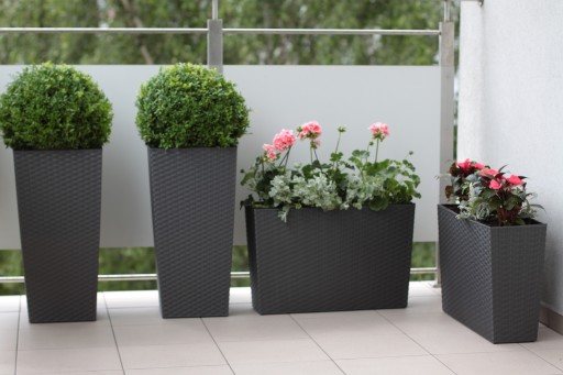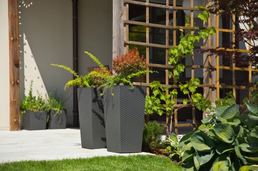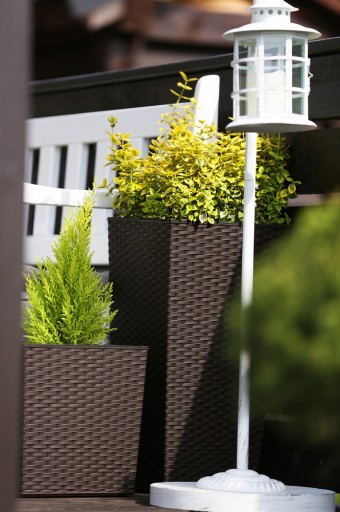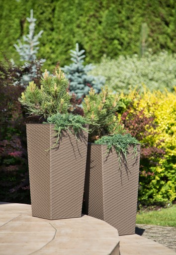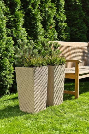 Donica Doniczka FINEZJA 190 x 190 mm, wysokość 360 mm, struktura Rattan, kolor BIAŁY z wkładem kolor czarny