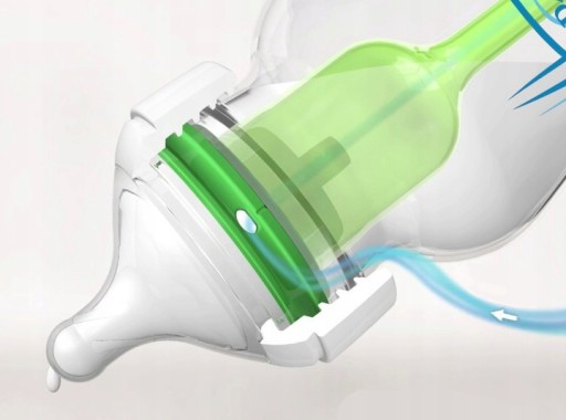 - system pełnego odpowietrzenia butelki umożliwia karmienie bez powstawania próżni, podobne do karmienia piersią.