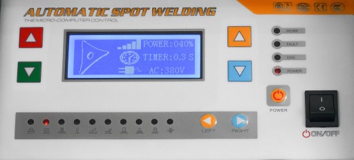 - Wyświetlacz monochromatyczny (wyświetla tryb pracy, czas zgrzewania, grubość materiału i natężenie prądu zgrzewania)