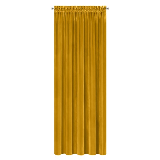 Zasłona wykonana z miękkiej i puszystej tkaniny welwetowej z charakterystycznym dla tej tkaniny połyskiem elegancko wyróżni modne wnętrze. Modny musztardowy kolor znakomicie uzupełnia aranżację. Grubsza, puszysta i dobrze kryjąca okno tkanina o gęstym splocie dobrze osłania okno, zapewnia prywatność oraz przyjemny klimat we wnętrzu.