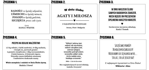 - Numer życzeń oraz dane do graweru na wewnętrznej tabliczce (Imiona osób składających życzenia)