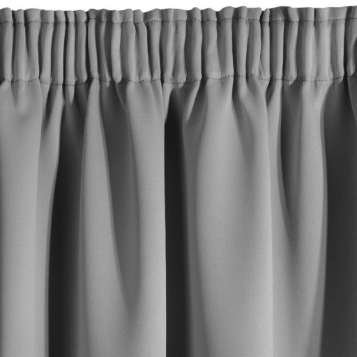 Zasłonę uszyto ze specjalistycznej tkaniny typu blackout, która zapewnia zaciemnienie wnętrza.