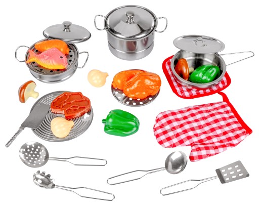 Rewelacyjny zestaw garnków będzie przydatny w każdej domowej kuchni małego szefa kuchni. Świetnie się sprawdzi do gotowania obiadków dla lali i misiów. Produkt rozwija wyobraźnię i zdolności manualne oraz sprawia dużo radości przy wielogodzinnej zabawie.