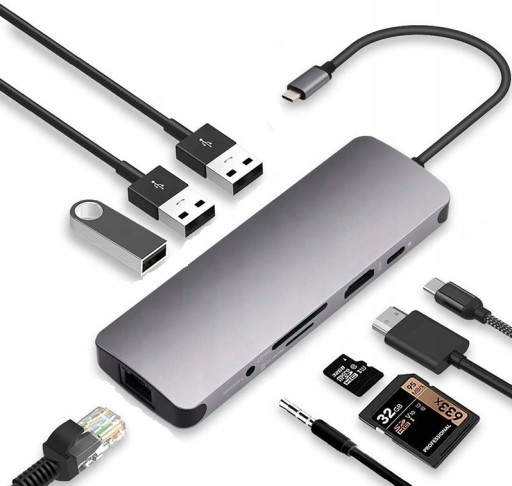 Adapter 9w1 HUB USBC HDMI 4K SD do Macbook Pro/Air