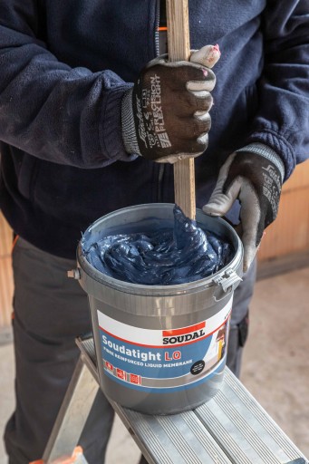 - Klej nakładać pasmami w takiej ilości, by po dociśnięciu folii (np. wałkiem gumowym) powstało spojenie o grubości ok. 1 mm i szerokości minimum 25 mm – możliwie na całej powierzchni styku folii z podłożem.