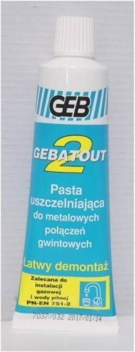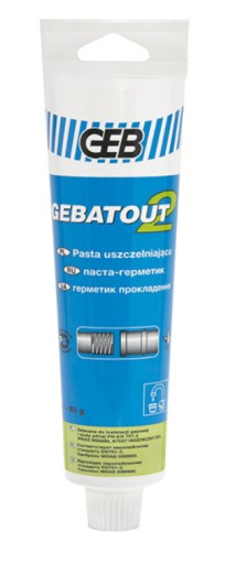 PASTA DO USZCZELNIANIA POŁĄCZEŃ GWINTOWANYCHGEBATOUT 2tuba 80gPasta uszczelniająca nietwardniejąca do złączy gwintowych metalowych w instalacjach wodnych i gazowych. Pozwala na demontaż. Natychmiastowa wytrzymałość na ciśnienie.Zabezpiecza gwinty przed korozją. Właściwości :