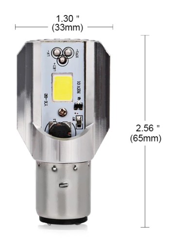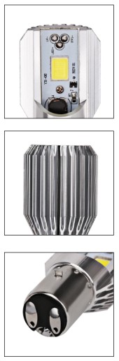Żarówka BA20D ze światłami mijania i drogowymi dzięki rozmieszczeniu diód jak w tradycyjnej żarówce. Świeci dwa razy mocniej od tradycyjnej, co daje światło zbliżone do reflektorów ksenonowych.